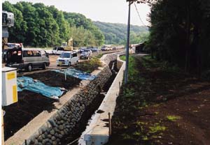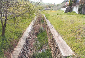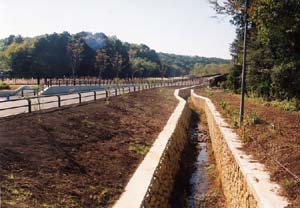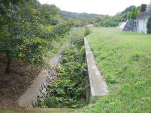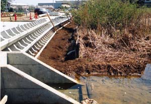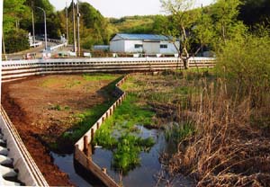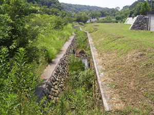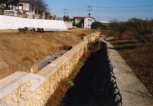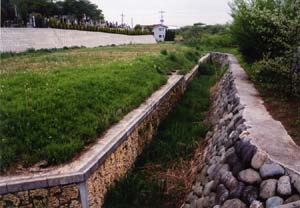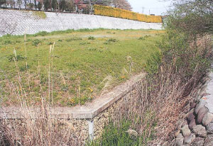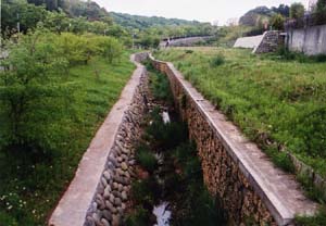 ●2003年4月10日 調整池の護岸と砂川堀への流入水路 |