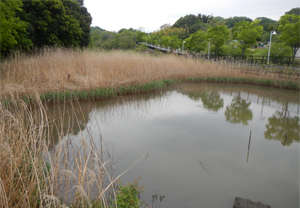 | B地区の開発に伴い、湿地北東部は水が溜められる調整池として整備されました。その後、浅い水面を有する池沼の状態となり、カワセミやアオサギ・クサガメ・アブラハヤ等の水辺の生きものの生息地となっています。 調節池は、整備後10年以上が経過しても、止水域としての安定した環境条件が保たれています。 |